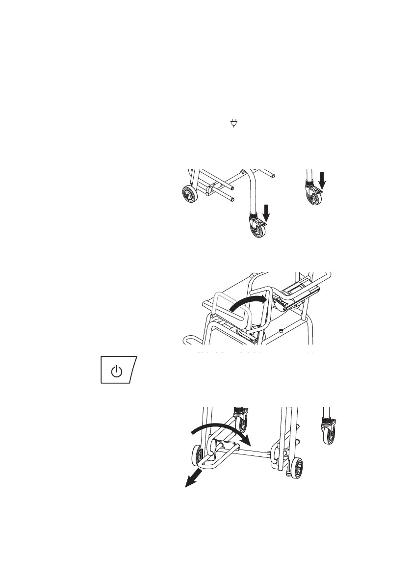 7. Baixe os apoios para os pés até ao batente.