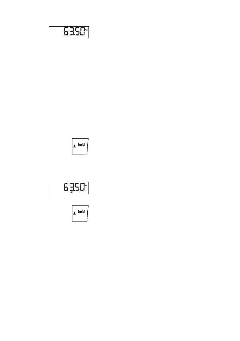 Quando activa a função HOLD, o valor do peso conti-