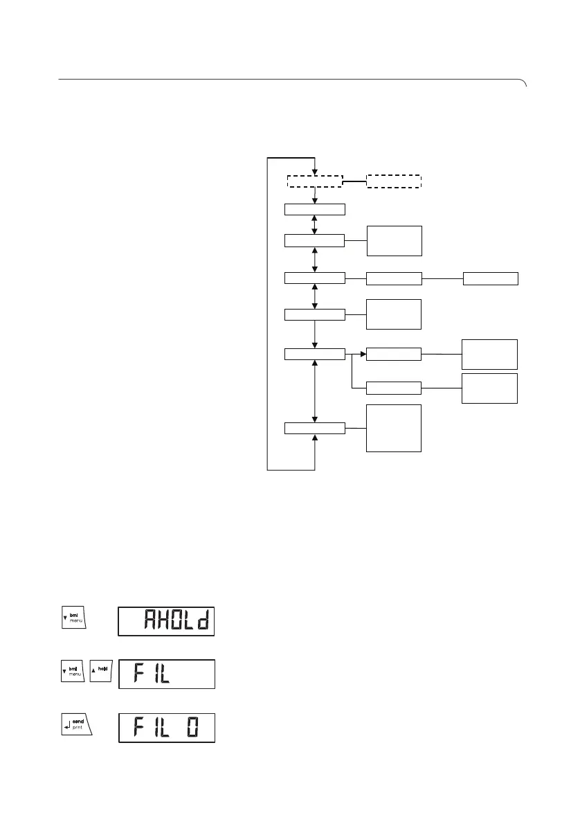 2. Mantenha a tecla de seta (bmi/menu) premida, até