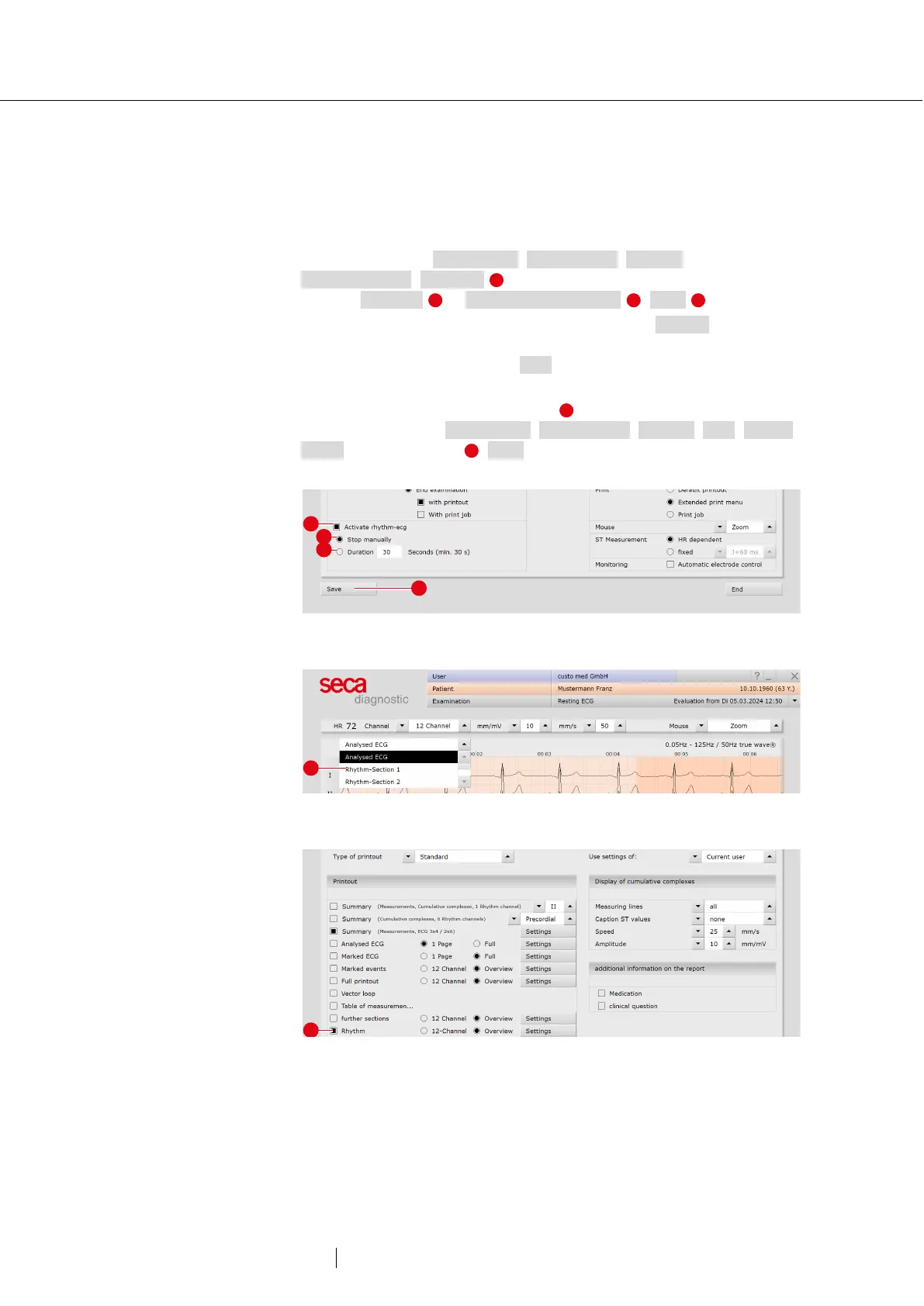 rhythm strips. Under Examination, Resting ECG, Settings, Print, Printed