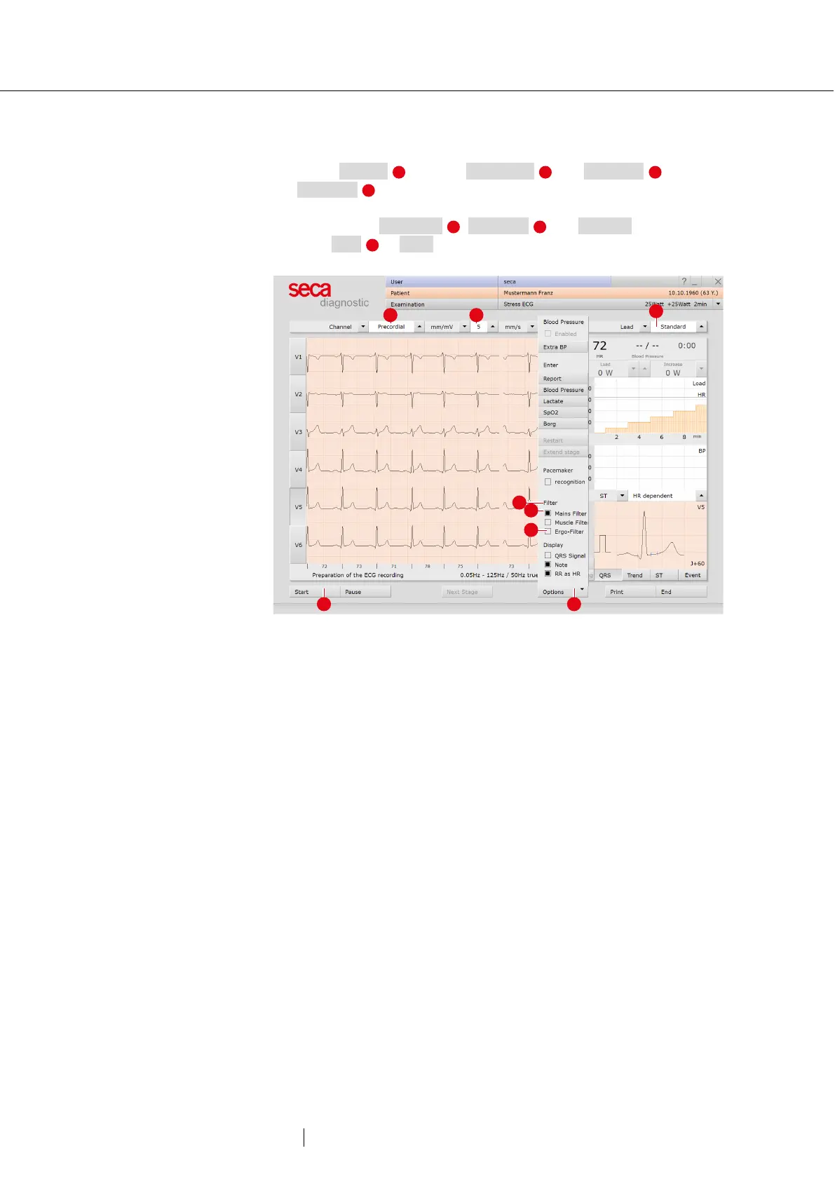 → ECG display Precordial , 5 mm/mV and 25 mm/s.