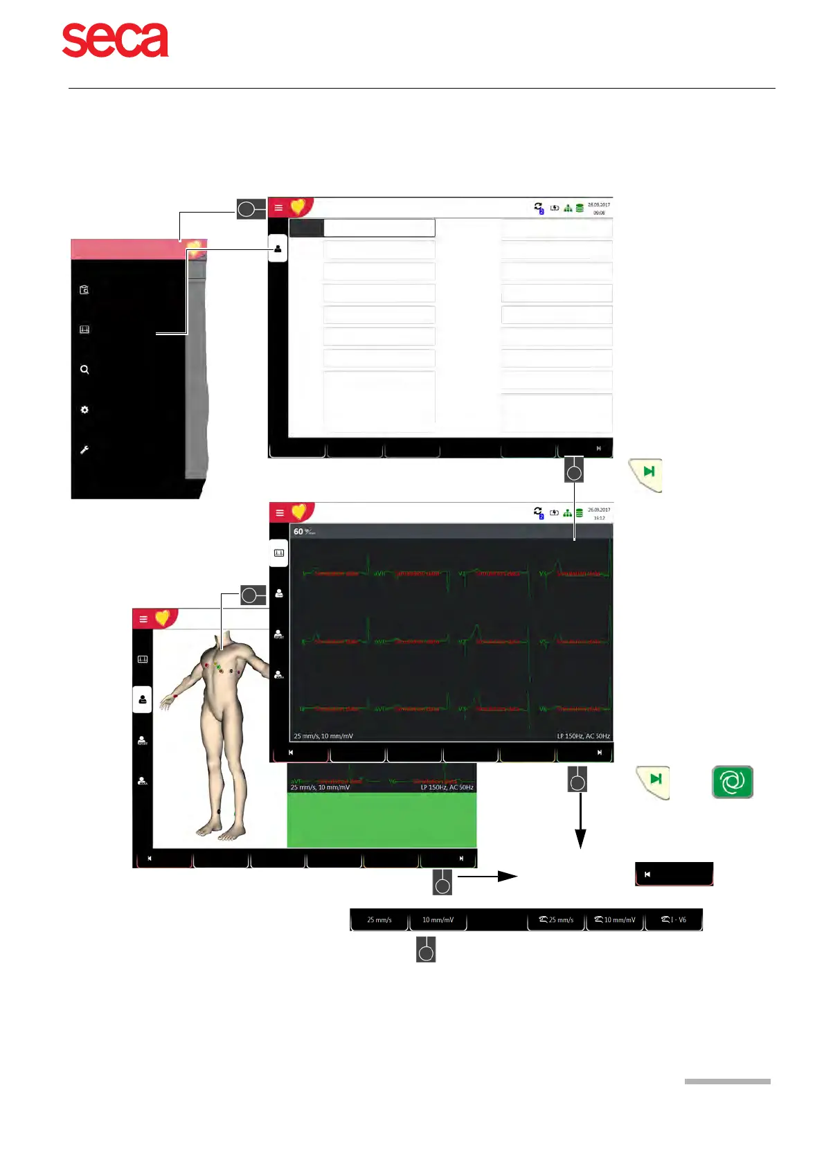 Settings for speed/amplitude for ECG display and settings speed/amplitude and
