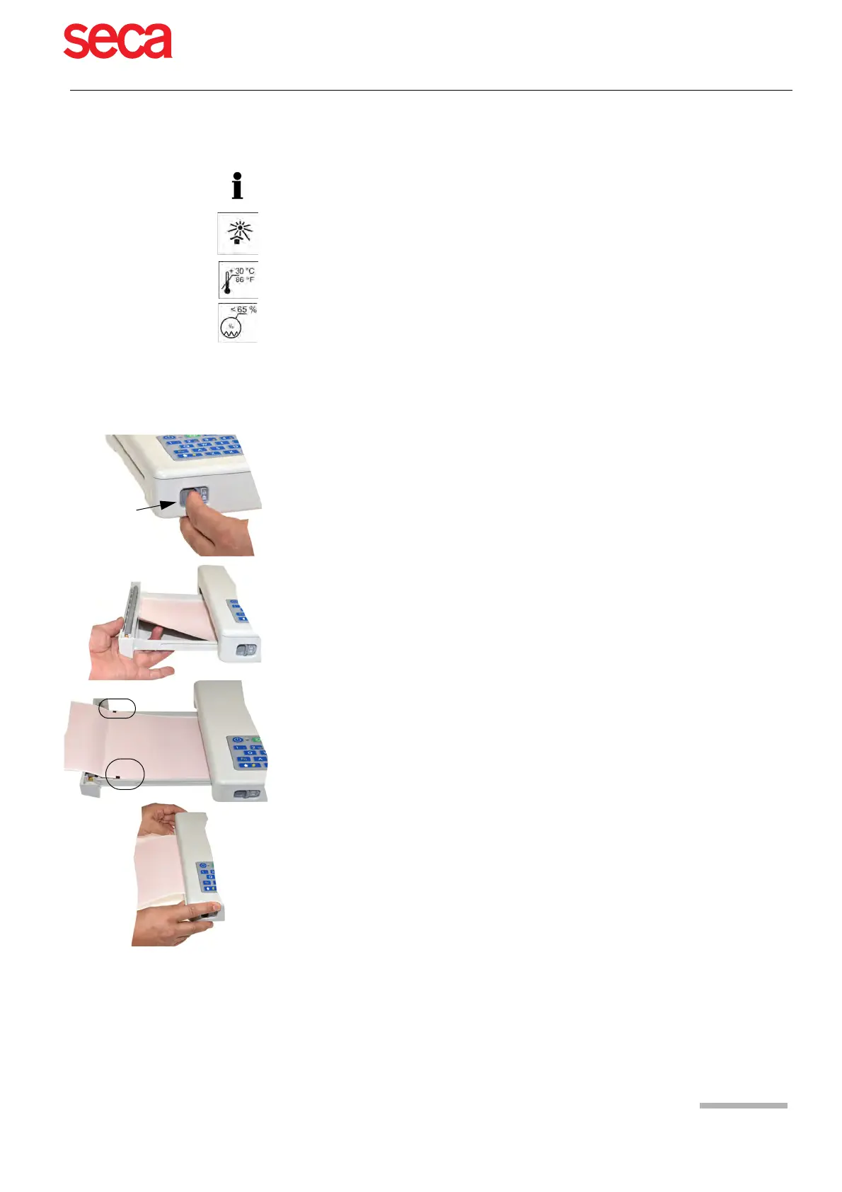 The device is delivered without printing paper inserted. The thermal paper is sensitive