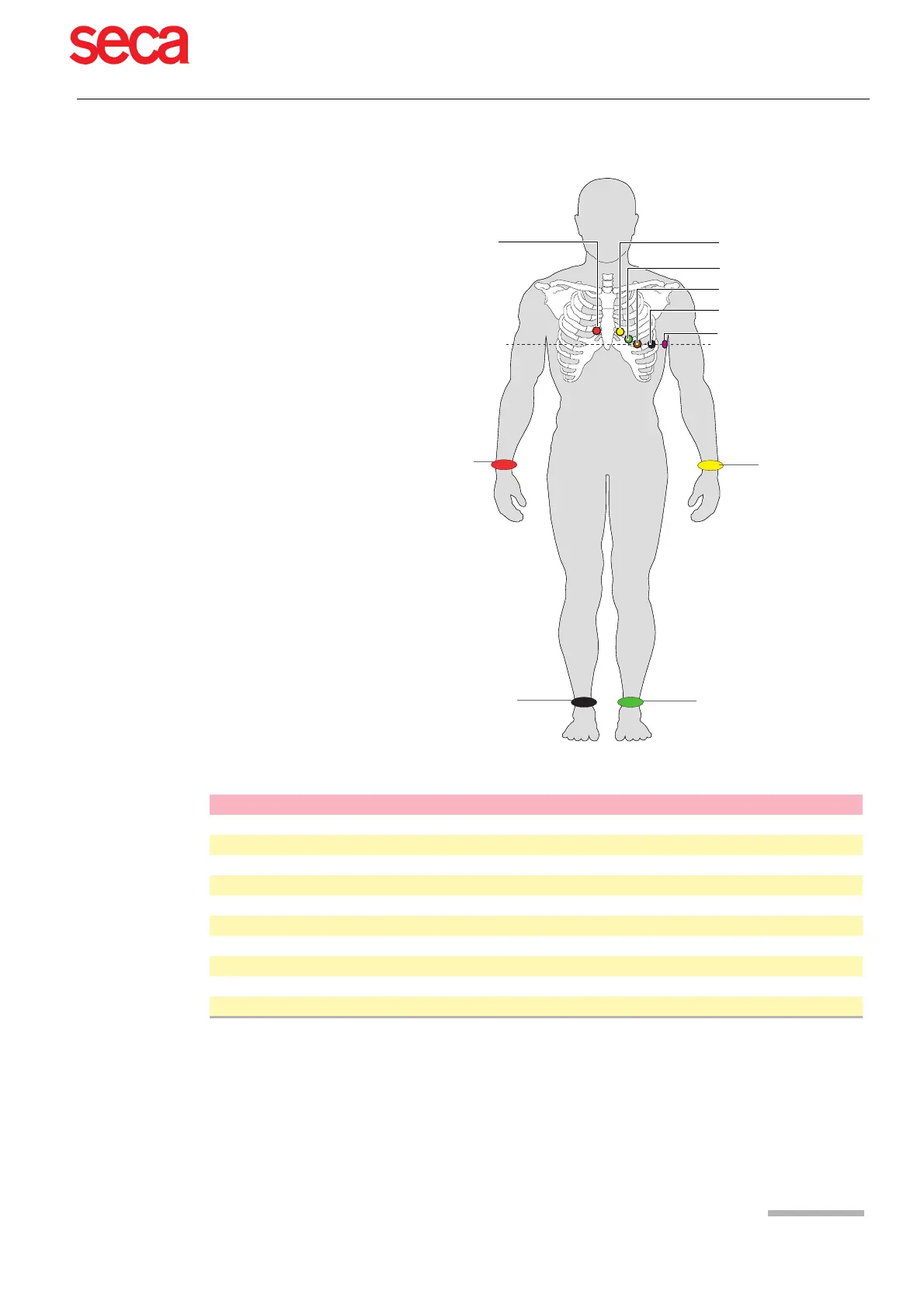 C2 yellow V2 yellow Fourth intercostal space at the left sternal border