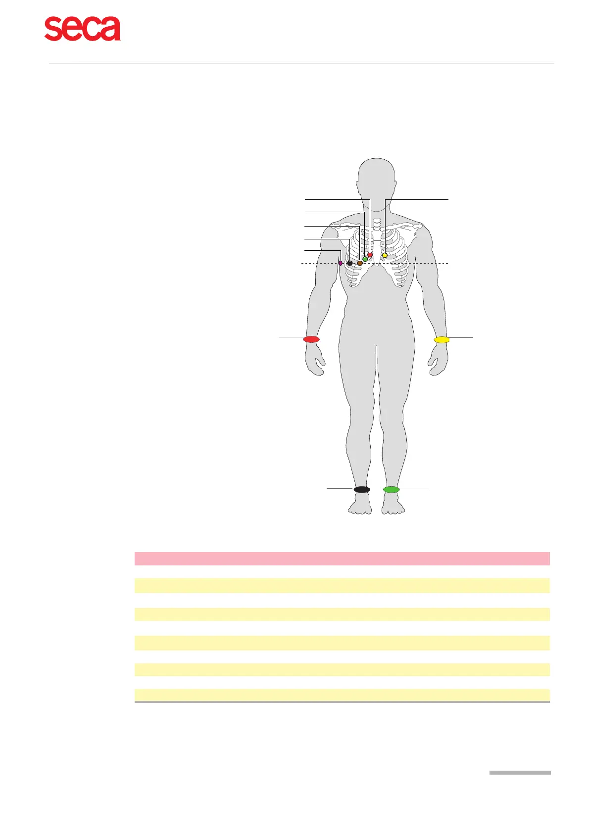 C4r white / brown V4 brown / blue Fifth intercostal space on the mid-clavicular line.