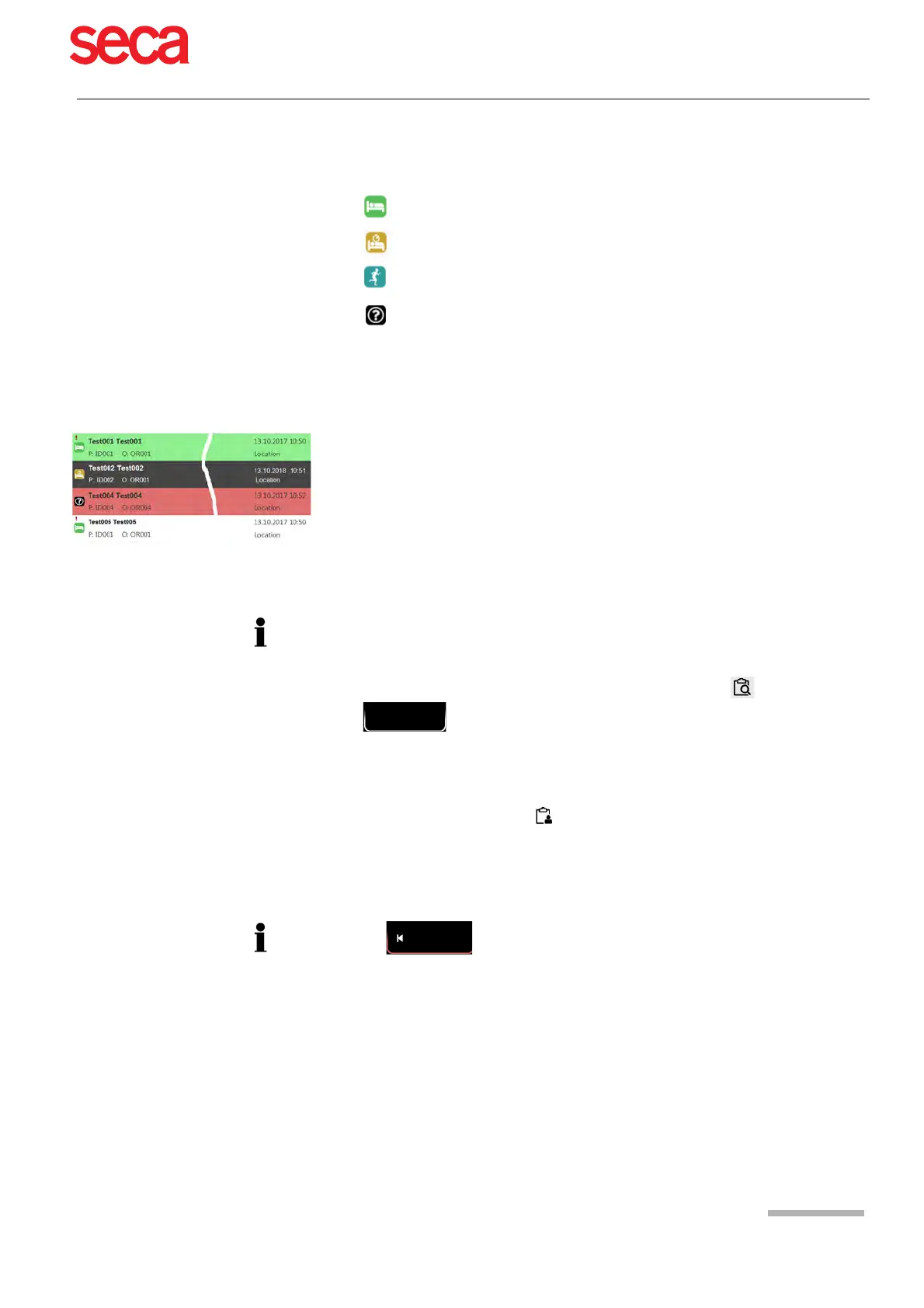 • Green background = already performed recording. The next time the worklist is