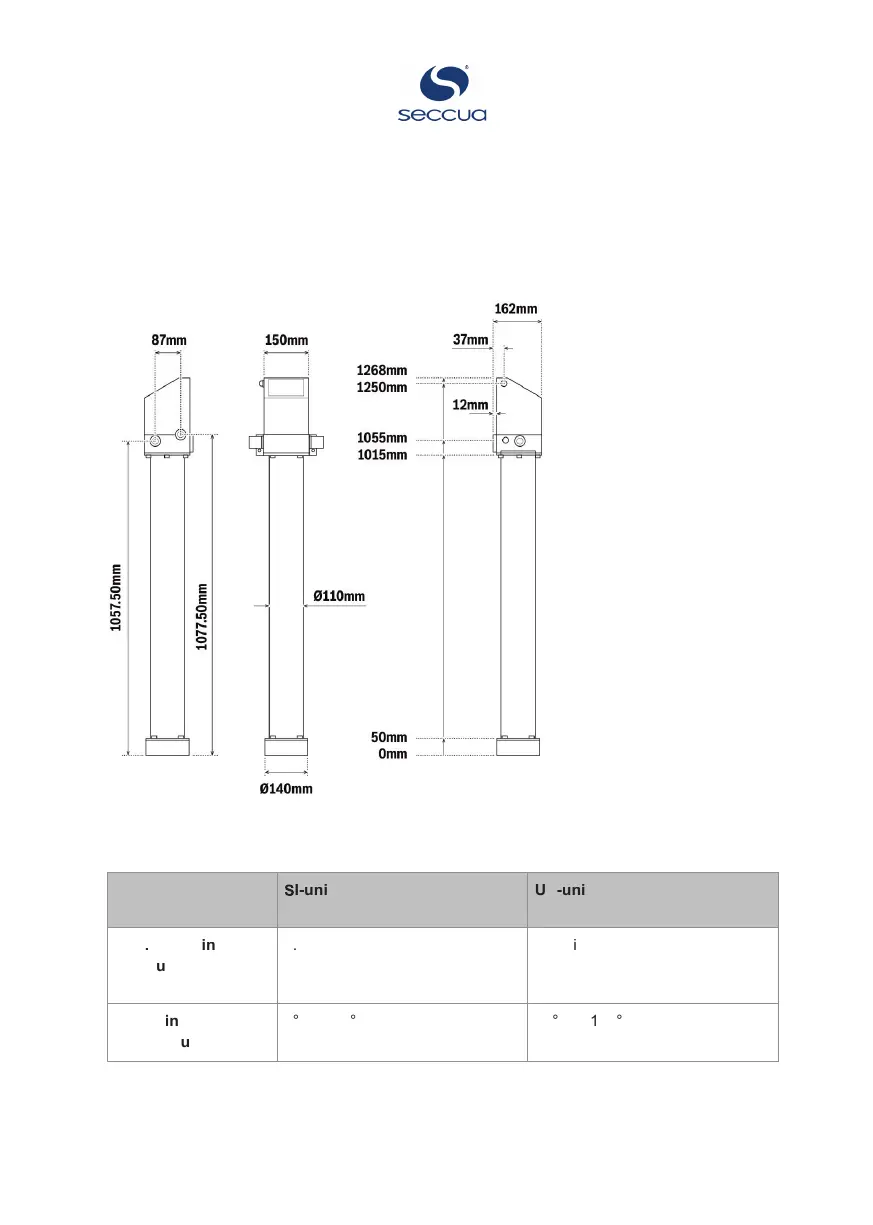 Seccua UrSpring - Technical Specifications; 6.1 Dimensions and Measurements; 6.2 Operating Data
