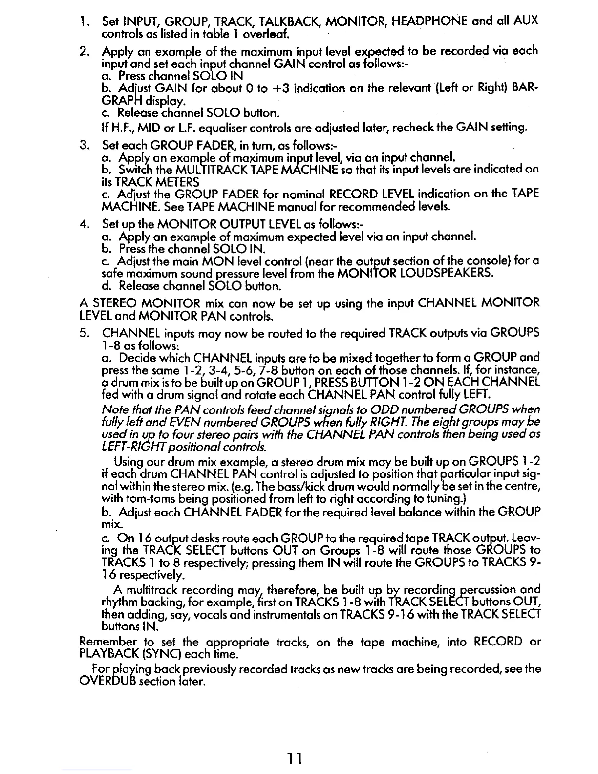Seck 1882 - INITIAL SETTINGS TO RECORD; Input, Monitor, and Group Setup; Track Assignment and Final Checks