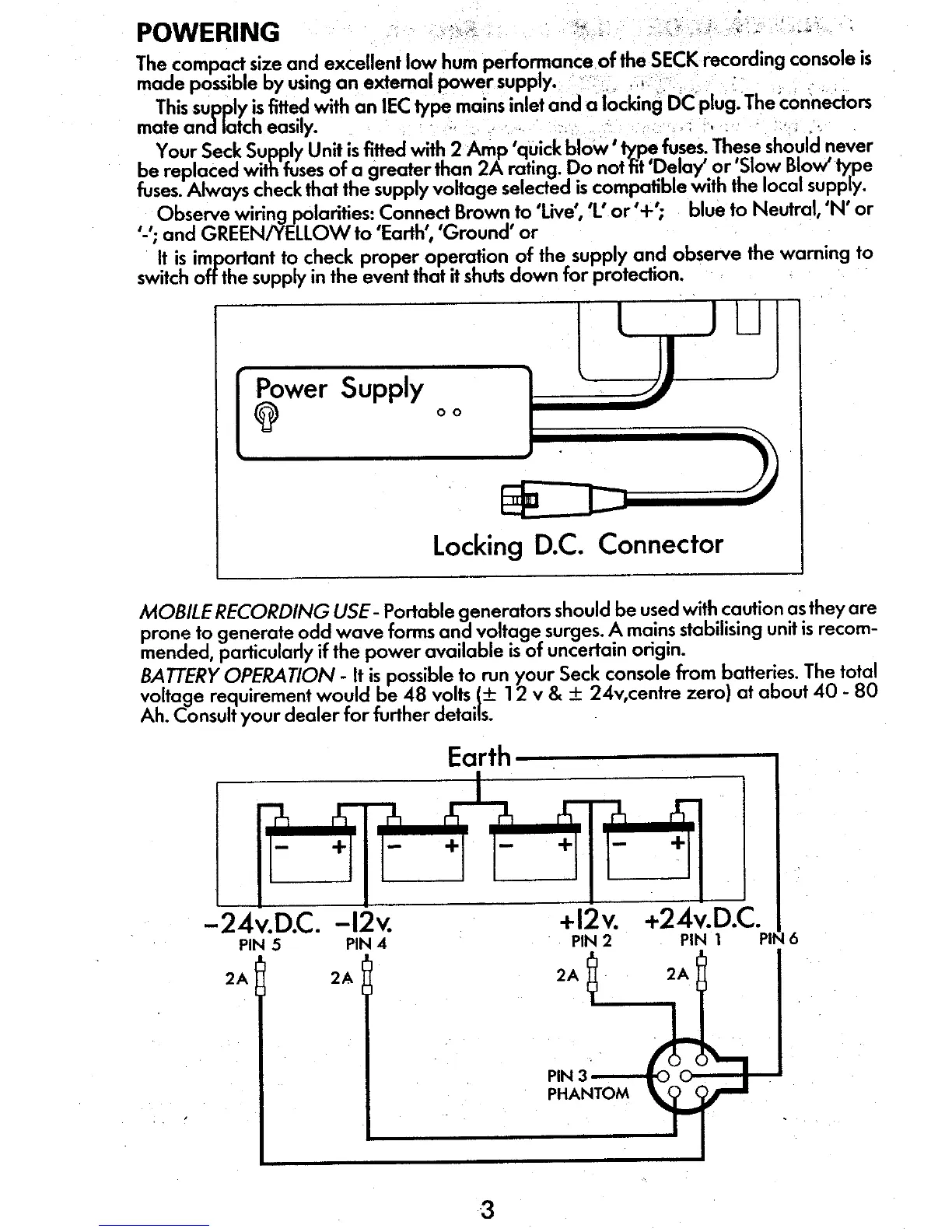 Seck 1882 - POWERING THE CONSOLE; External Power Supply and Fuses; Wiring and Alternative Power