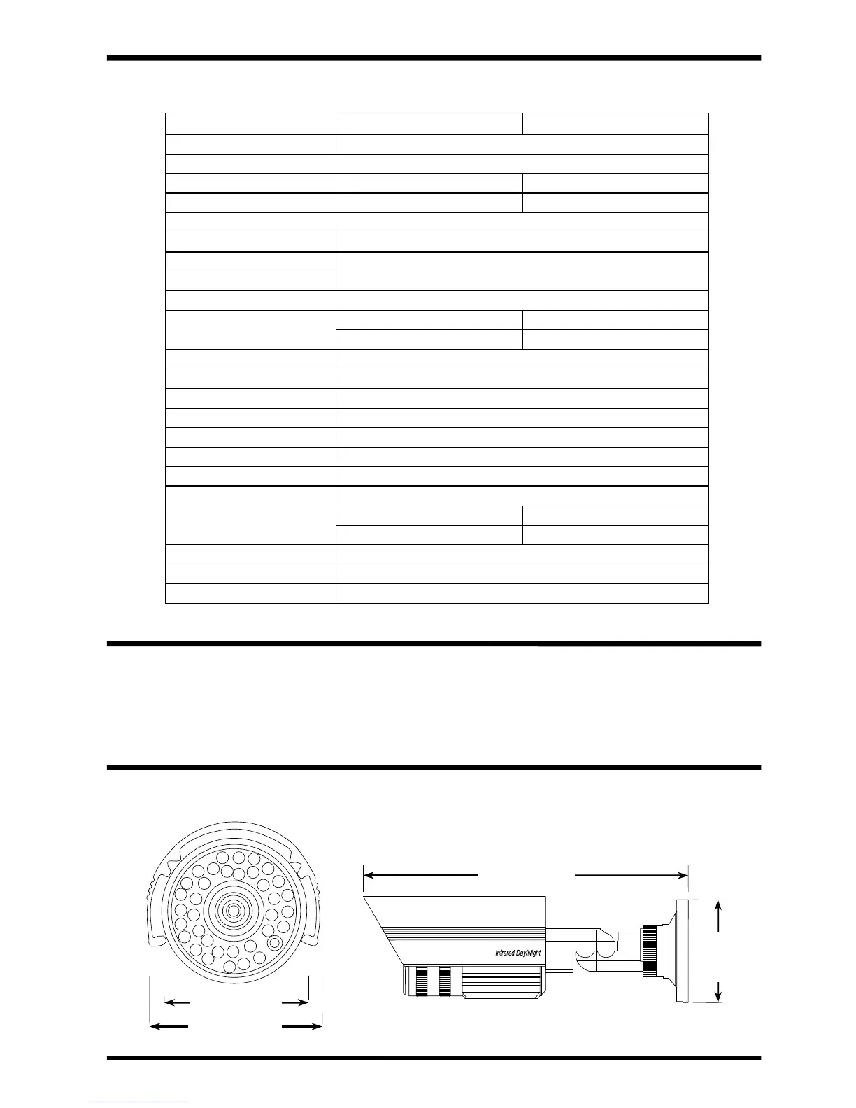 SECO-LARM 36 - Product Specifications; Camera Model EV-1146-N6 SQ; Camera Model EV-1646-N6 SQ; Parts List and Dimensions