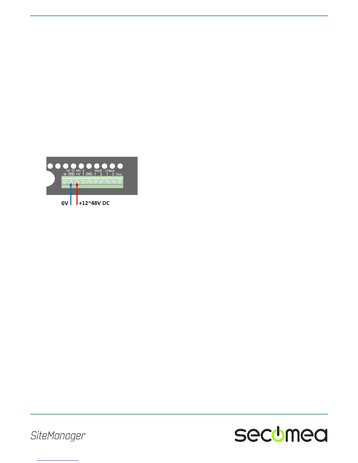 On the SiteManager the power should be applied between GND and +V as