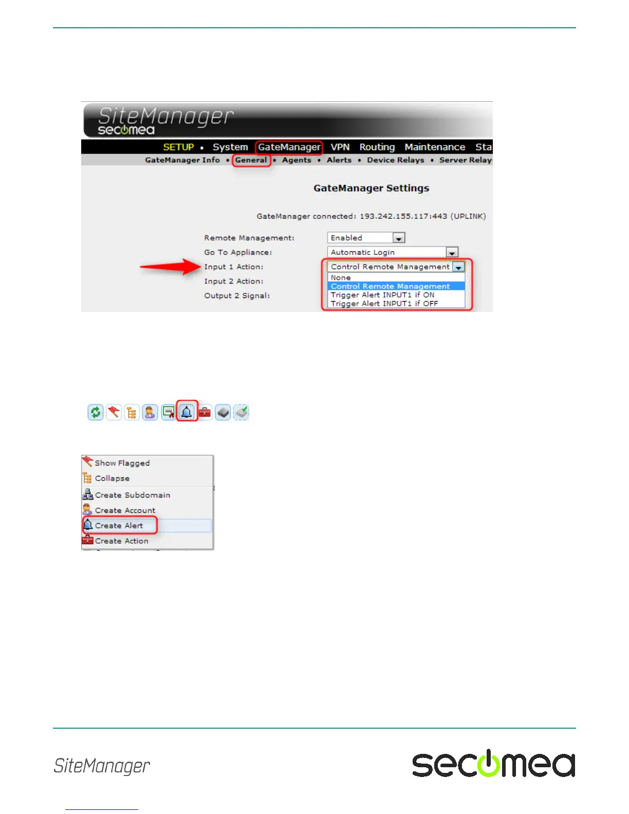 Defining an alert on the GateManager requires a GateManager Domain ad-