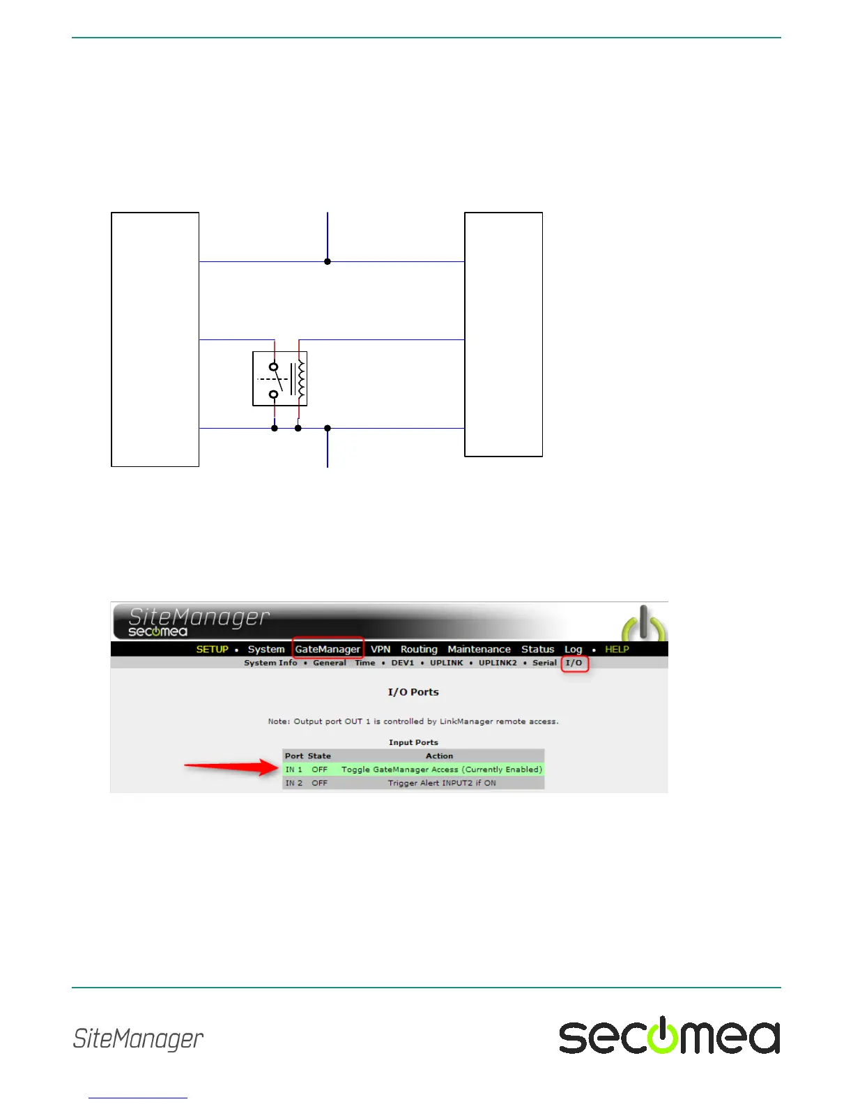 In the SiteManager menu GateManager > I/O you can determine if the de-