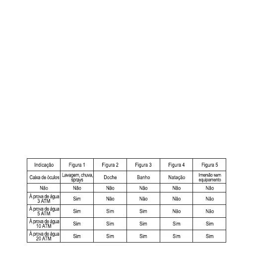 A indicação water resistant (resistente à água) é válida somente para os relógios novos de fábrica.