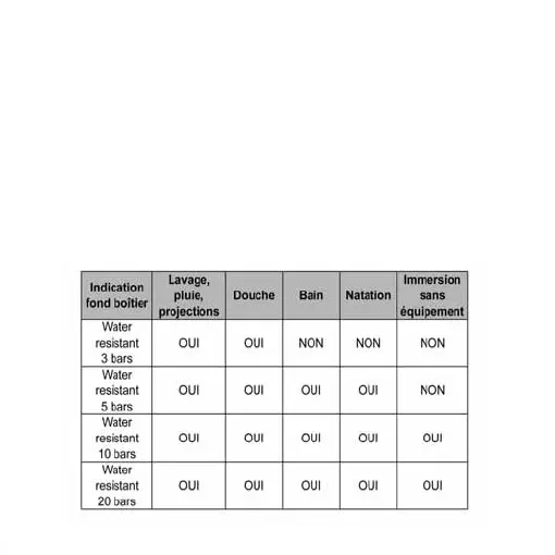 L’indication water resistant (étanche) ne s’applique qu’aux montres neuves sorties de l’usine. Les agents externes