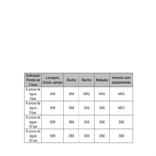 que foram efetuados.A indicação de à prova de água é válida apenas para os relógios recém fabricados. As influências
