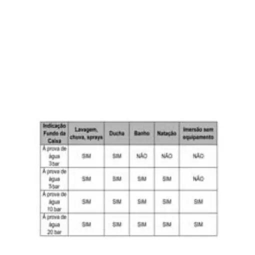 efetuados.A indicação de à prova de água é válida apenas para os relógios recém fabricados. As influências exteriores