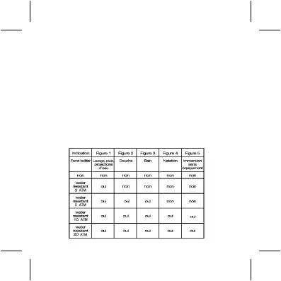 de l’exécution de l’essai d’étanchéité. L’indication water resistant (étanche) ne s’applique