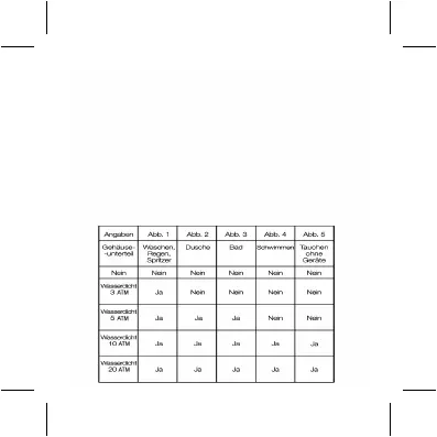 Angabe „wasserdicht“ ist nur für fabrikneue Uhren gültig. Äußere Einfl üsse können die
