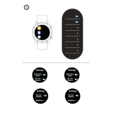 Press sma ll Bu tto n to tu rn on /off Sedantary o r Do No t Dis tur b Mod e