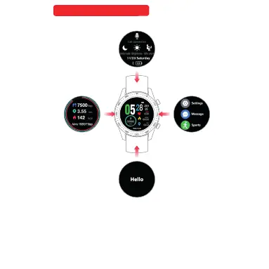Mode face de la montre Déplacement vers la gauche Mode sport Déplacement vers