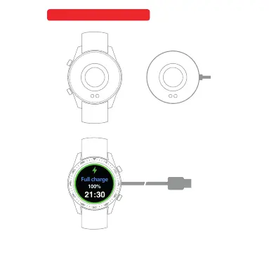 The Charger USB Cabl e can t hro ugh L apt op or P lug s to ch arg e thw w atch.