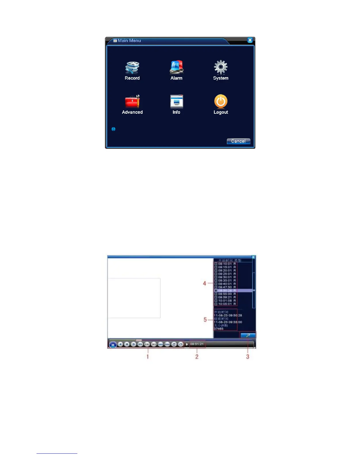 2、 Main menu>Record->Playback