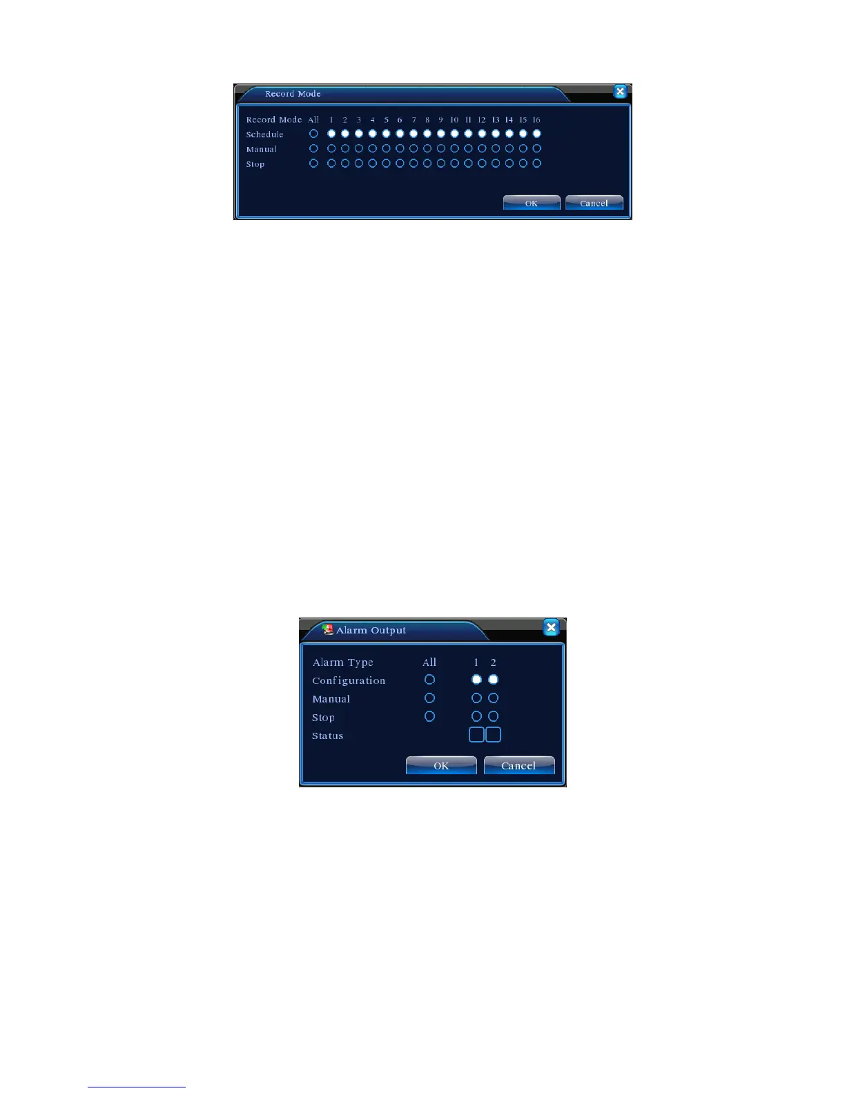 【Stop】Click the stop button and the according channel stops alarming no matter the channel in any