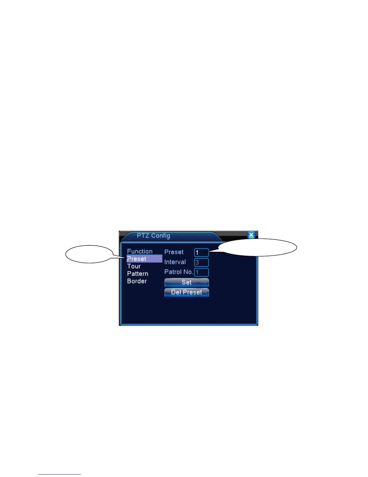 the input blank, write the preset points, then click Preset button, PTZ turn to the corresponding