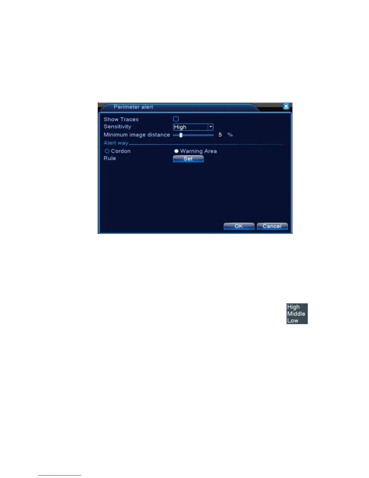 within warning area, and the size of object meet the rules of minimum image distance, alarm will be