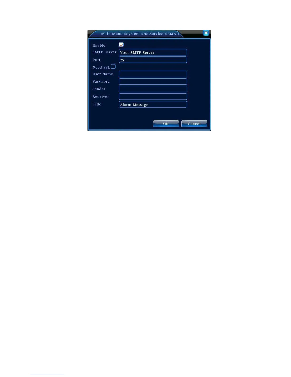 Receiver:Send the email to appointed receivers when the alarm is turned on. You can set three