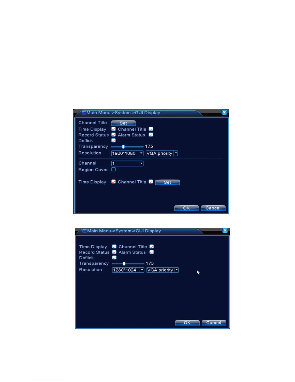 Encode output:In the network surveillance and video file mode include: channel title, time display,