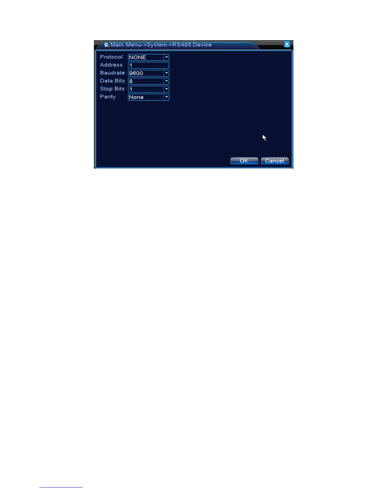 Remark:when analog channel existing, there will be PTZ and RS485 at PTZ setting, if device