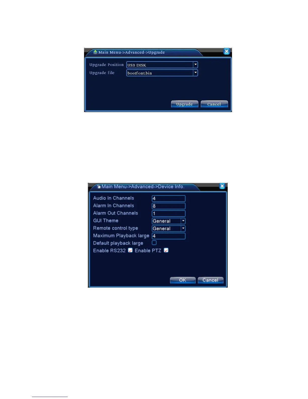 Users can export the log info and the configure file from device to connected flash stick, and also can