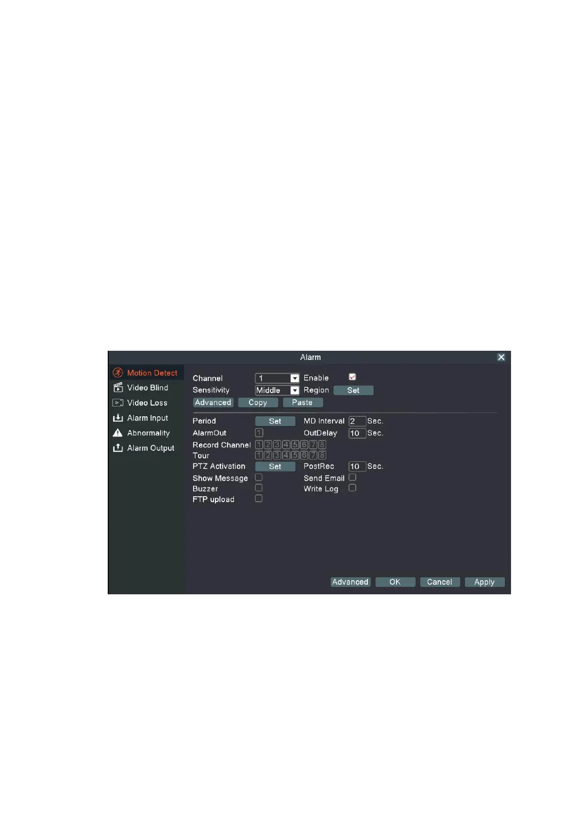 “Channel”Click the drop-down menu to select the channel number to set the motion