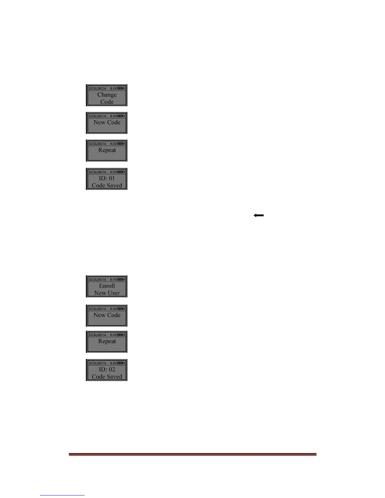 Note: The first two enrolled codes (ID No. 01 and 02) are Manager codes.