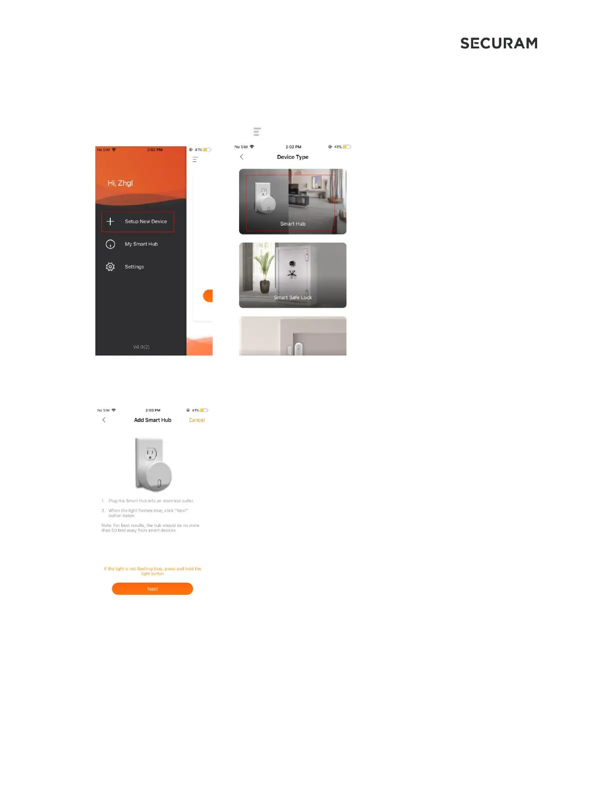 Follow the instructions on the SECURAM app to add and configure the Smart Hub.