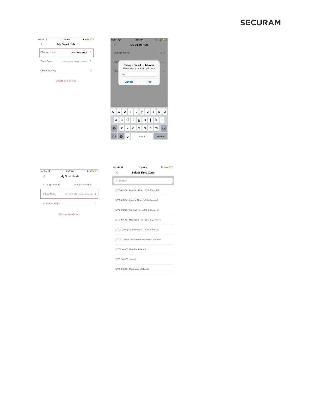 Securam Smart Hub - 3.2 Change Time Zone; 3.3 Check Update