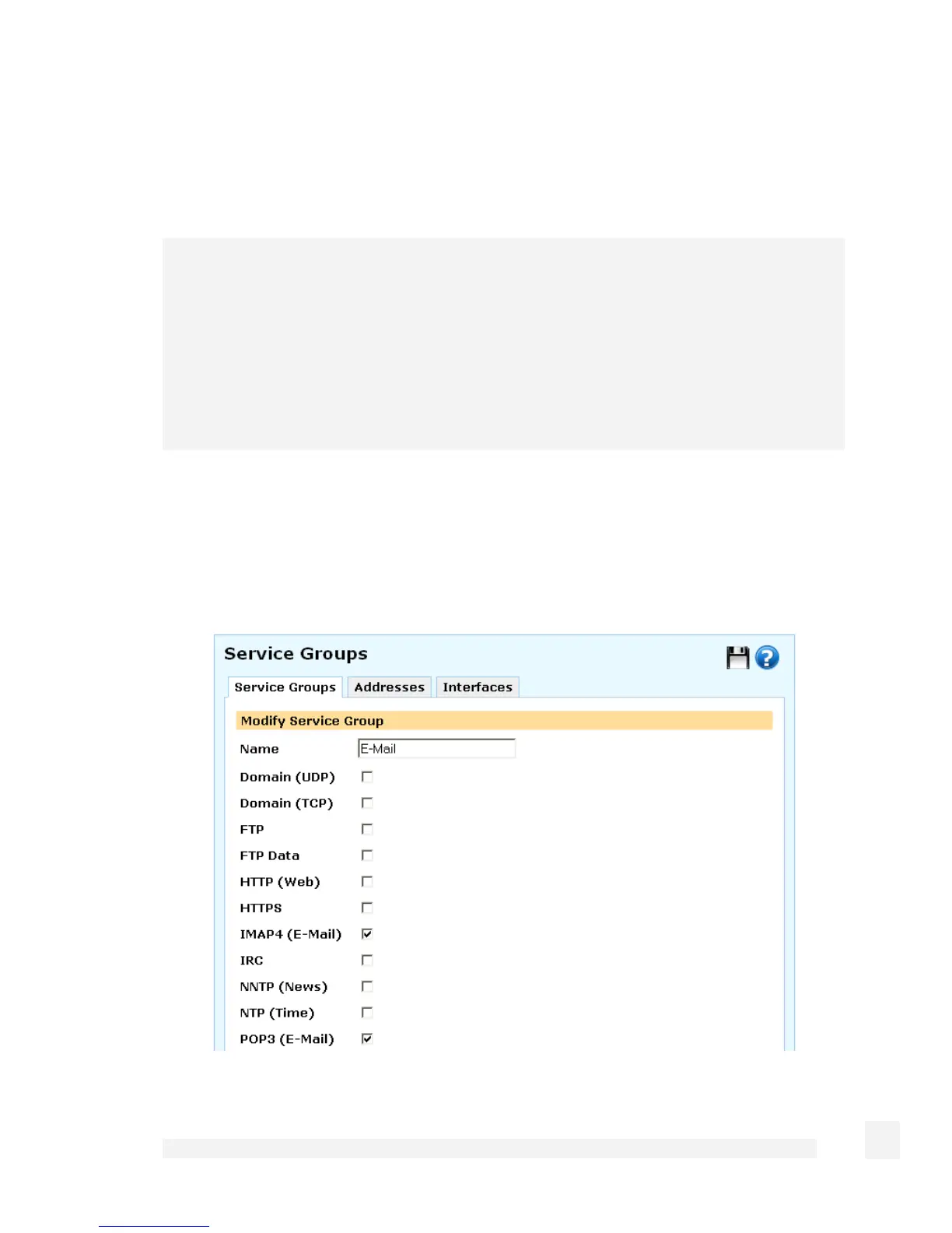 First, add a service group to group email services (SMTP, POP3 and IMAP).