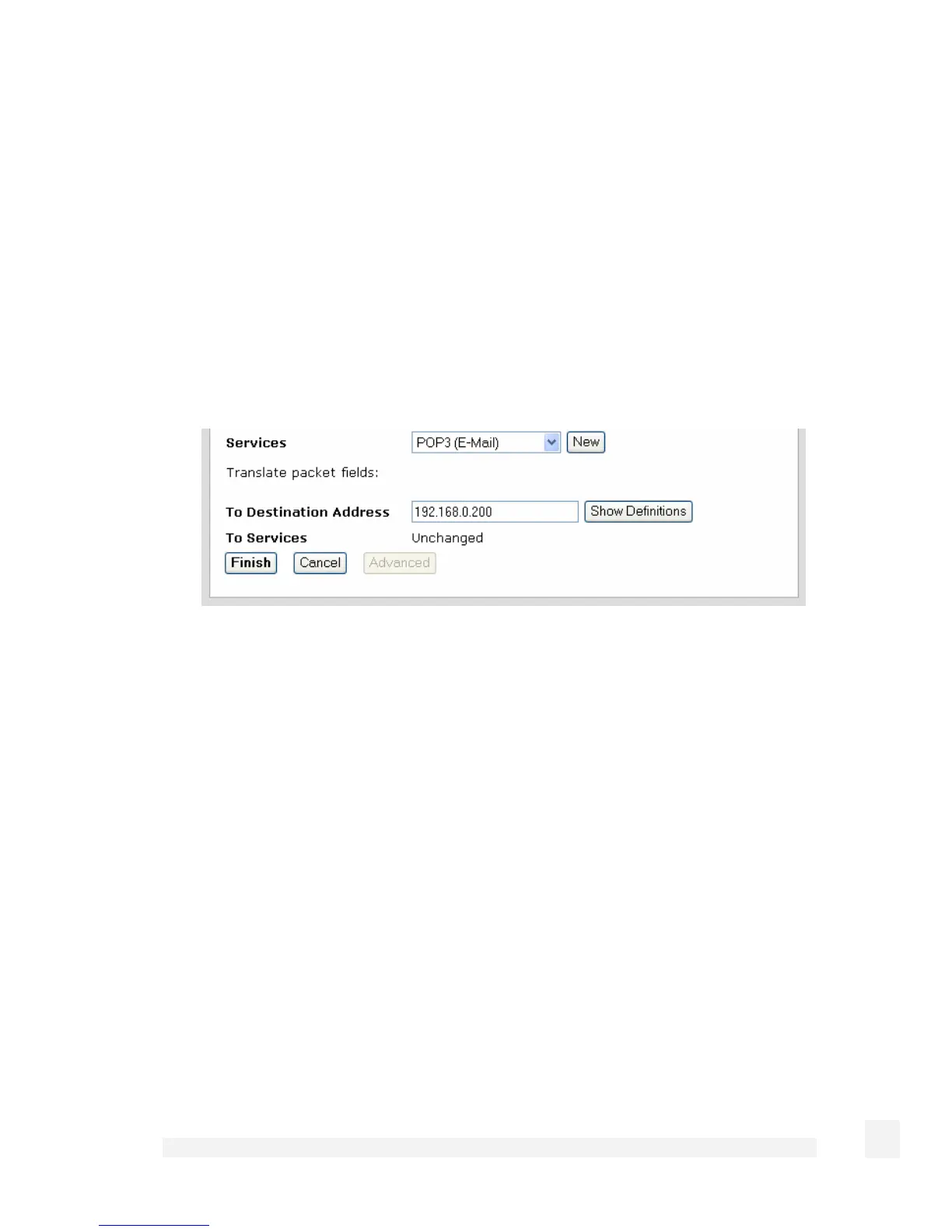 Enter your internal email server’s IP address in To Destination Address.