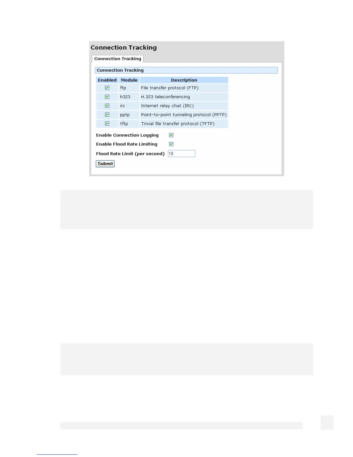 Check Enable Flood Rate Limiting to enable flood rate limiting for new connections on