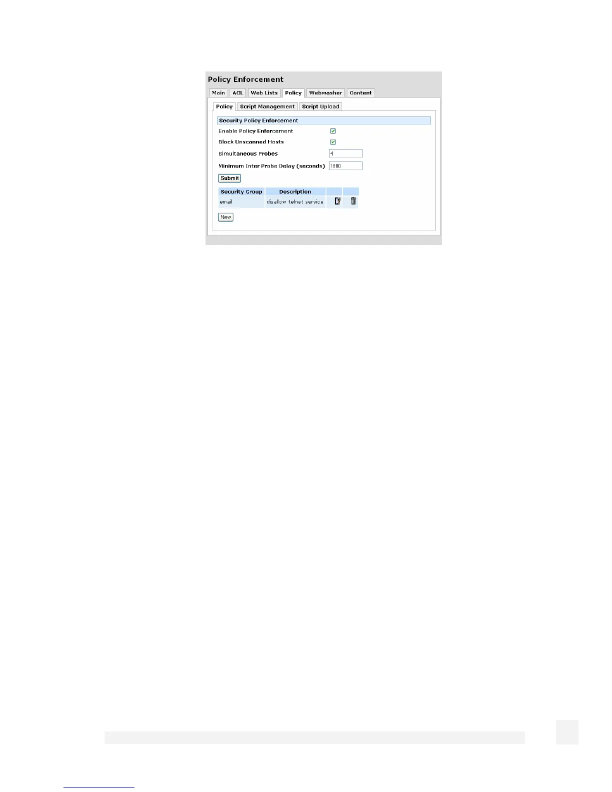 The top level page has a checkbox Block Unscanned Hosts which defines the behavior