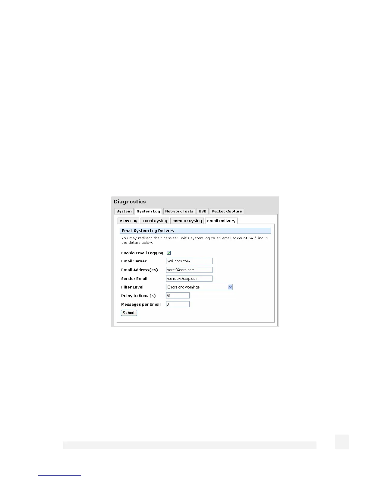 Syslog log messages may be sent to an email account. This allows you to keep system