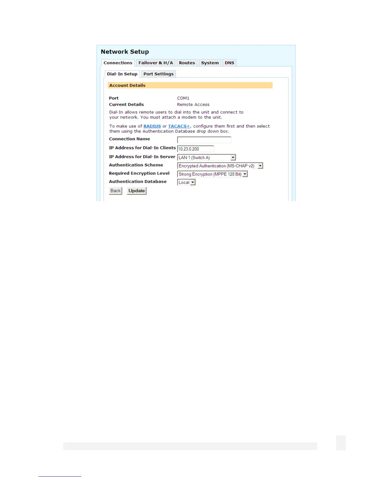 connect remote users to from the IP Address for Dial-In Server pull-down menu. This is