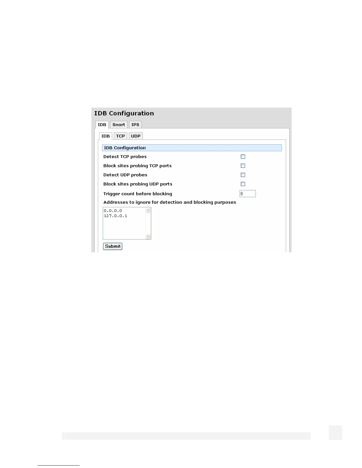 Click the IDB tab to configure basic Intrusion Detection and Blocking (IDB).