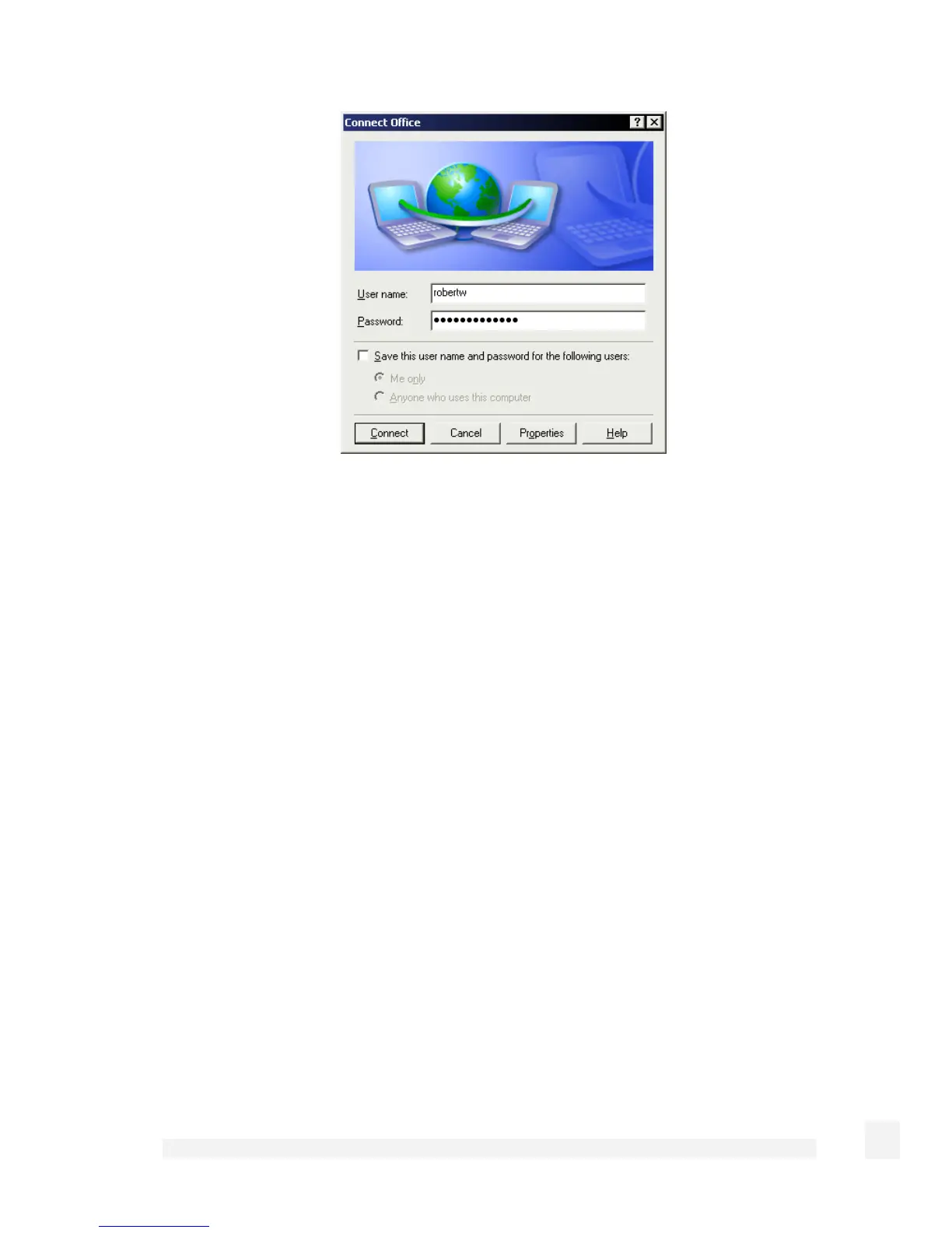 Enter a user name and password added in the Configuring user accounts for VPN server
