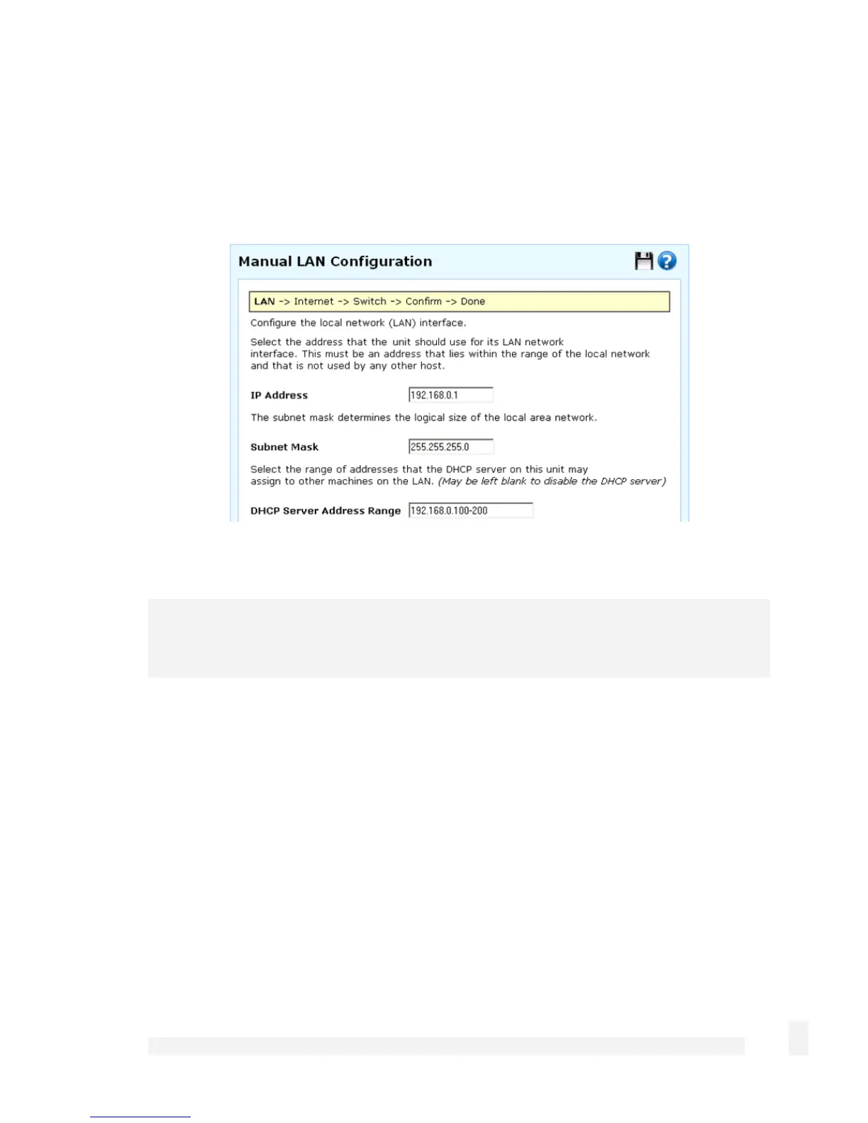 4. To enable the SnapGear unit’s built-in DHCP server, enter a range of addresses to
