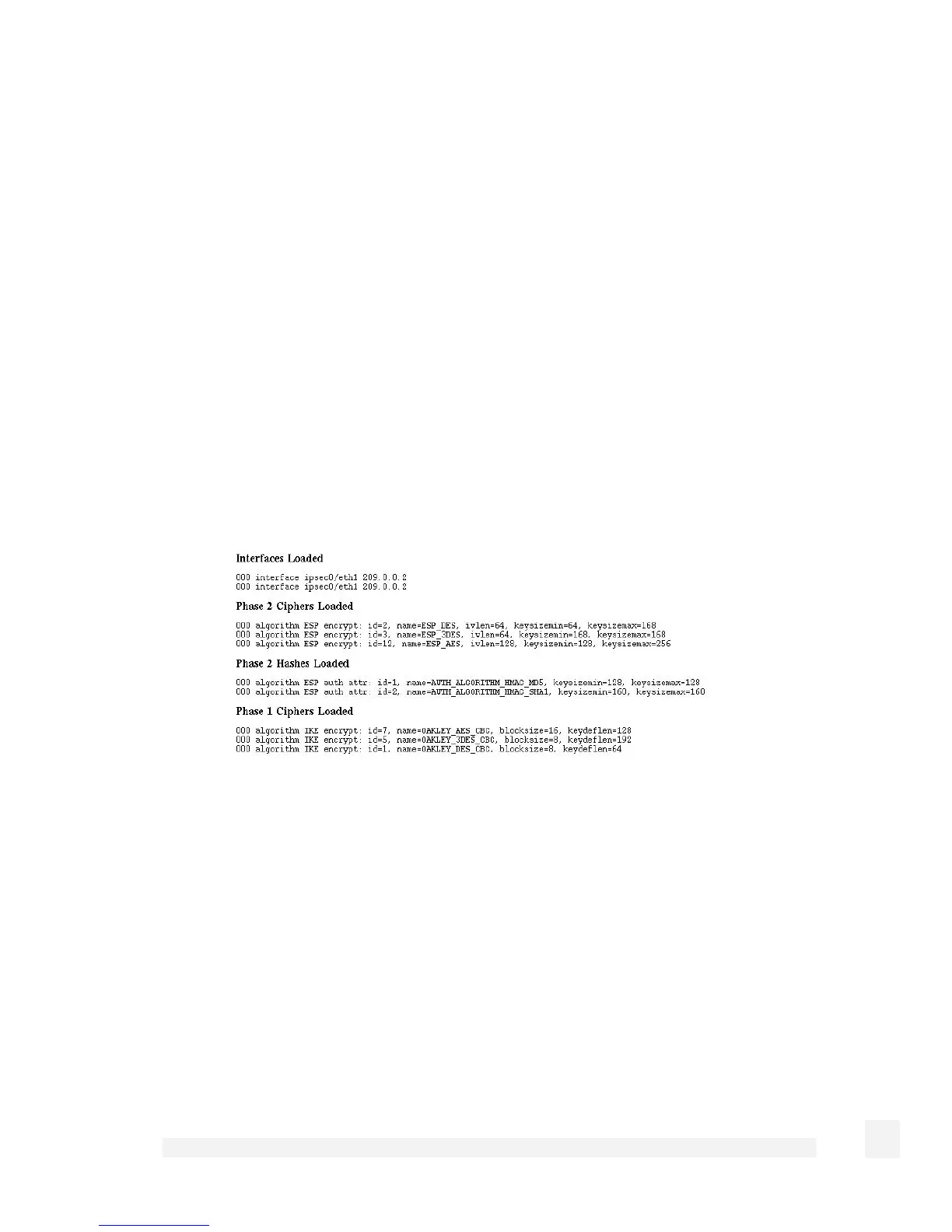 Phase 2 Ciphers Loaded lists the encryption ciphers that tunnels can be configured with