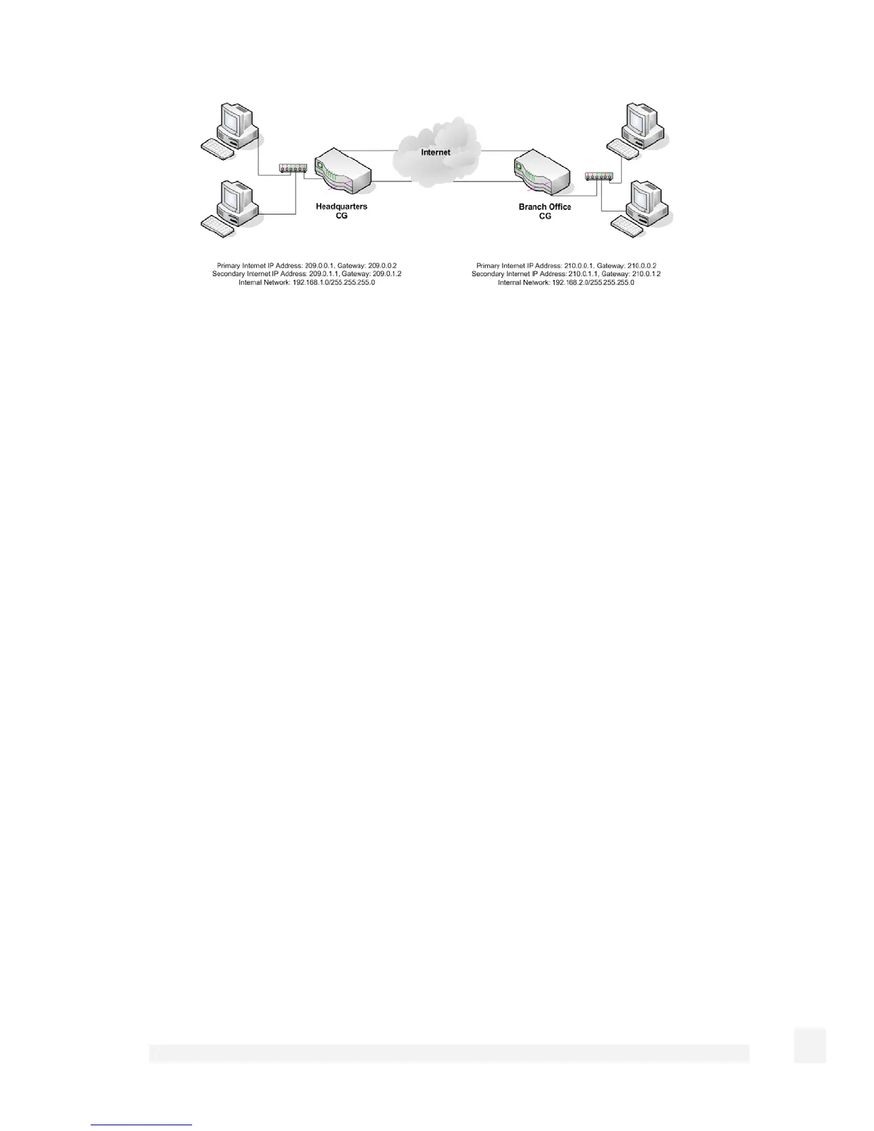 Setup an IPSec tunnel between the primary Internet IP Addresses (209.0.0.1 <>