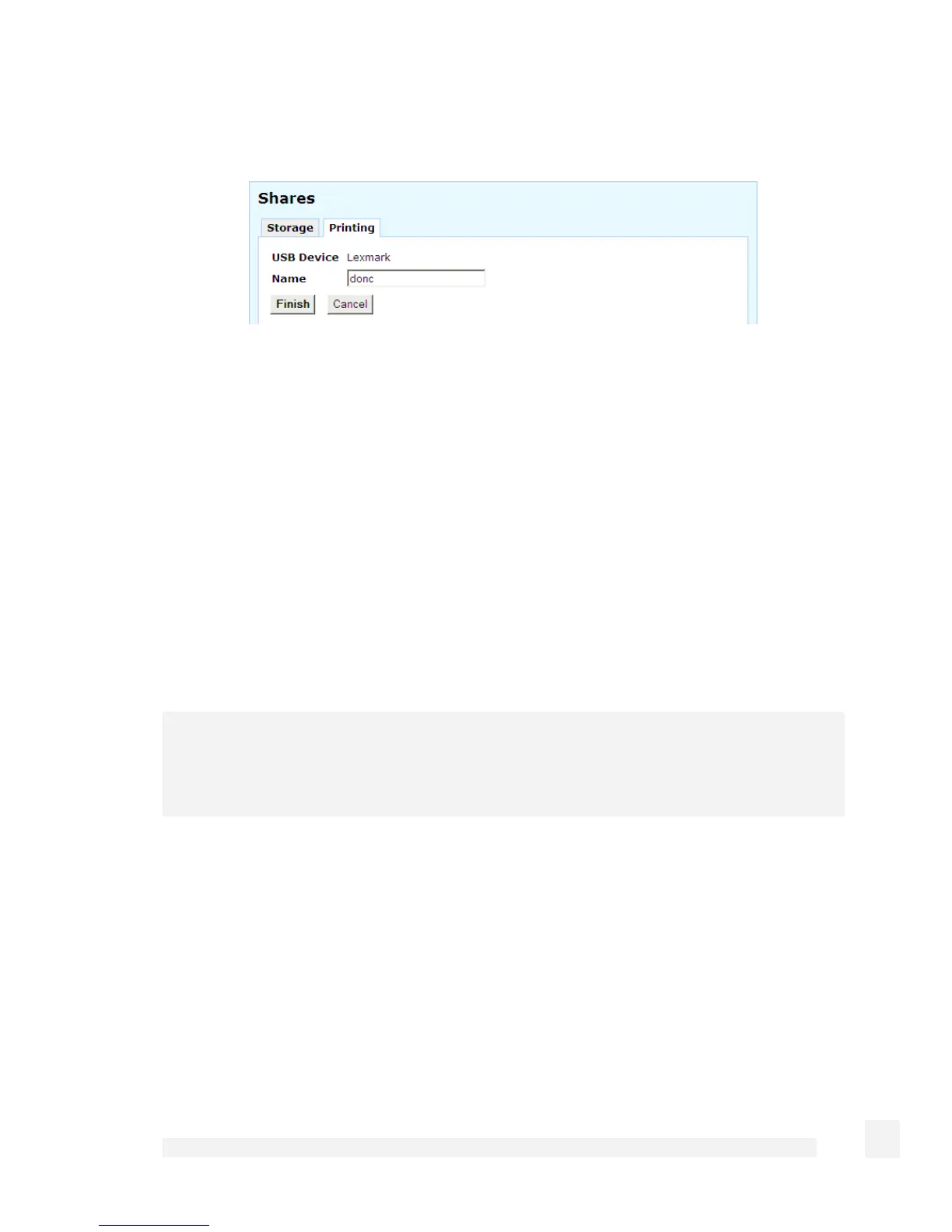 Select Shares from the Networking section of the main menu. Click the Printing tab.